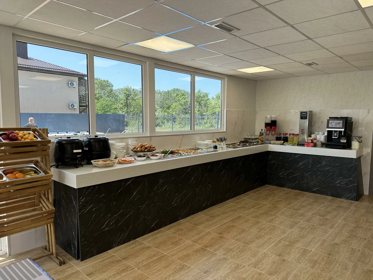 Кафе-бар С 10:00 до 22:00 для лёгких перекусов и напитков. В ассортименте: прохладительные и алкогольные напитки, закуски, снеки, свежая выпечка, сухие хлопья и молочная продукция.