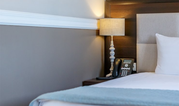 В номере: вешалка, зеркало, кровати односпальные /одна двуспальная кровать, прикроватные тумбочки, столик туалетный, стулья, тумба багажная, шкаф встроенный, кондиционер, мини-холодильник, телевизор, телефон, чайная станция, чайный набор посуды