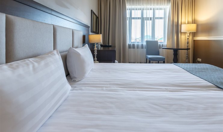 В номере: вешалка, зеркало, кресла, кровать двуспальная/ две полутороспальные кровати, прикроватные тумбочки, столик кофейный, столик туалетный, стулья, тумба багажная, шкаф, кондиционер, мини-холодильник, телевизор ЖК, телефон, чайная станция, чайный набор посуды, электрочайник
